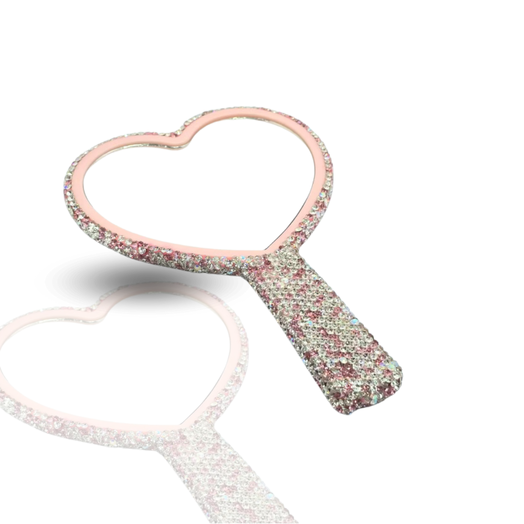 The perfect heart shaped, hand-held mirror with quality glass rhinestones, to give a luxurious lasting shimmer.